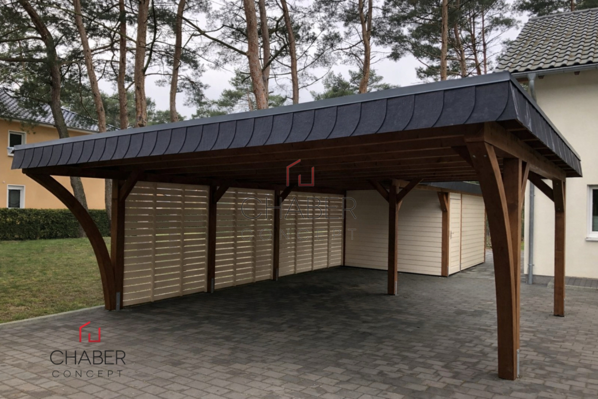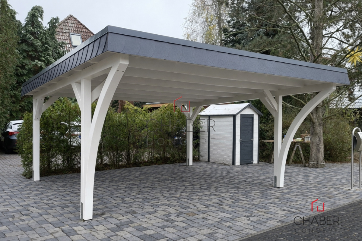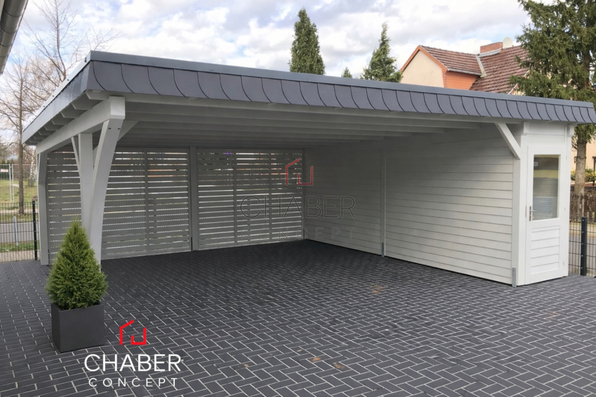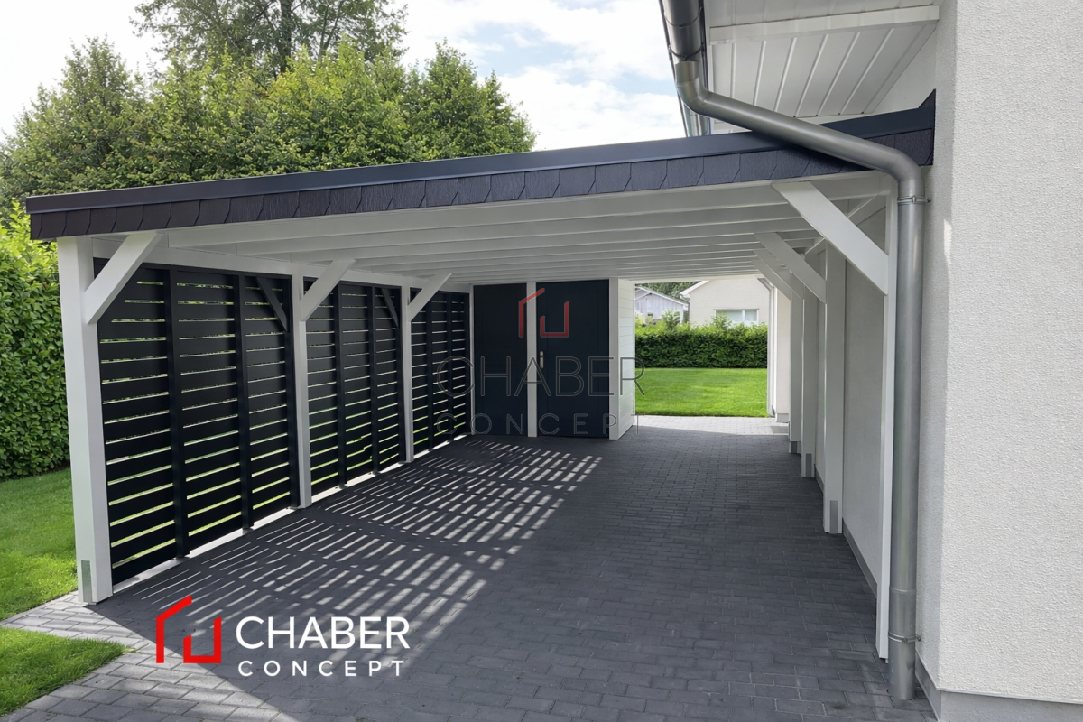 Tischlerei CHABER bietet eine große Auswahl an günstigen Carports: ob Einzelcarport oder Doppelcarport, ob mit Flachdach, Satteldach oder Trapezblechdach, mit Leimbogen oder Lamelen, mit Abstellraum für Gartengeräte und Fahrräder oder als Hobbyraum – bei uns können Sie den für Ihren Bedarf passenden Carport kaufen.