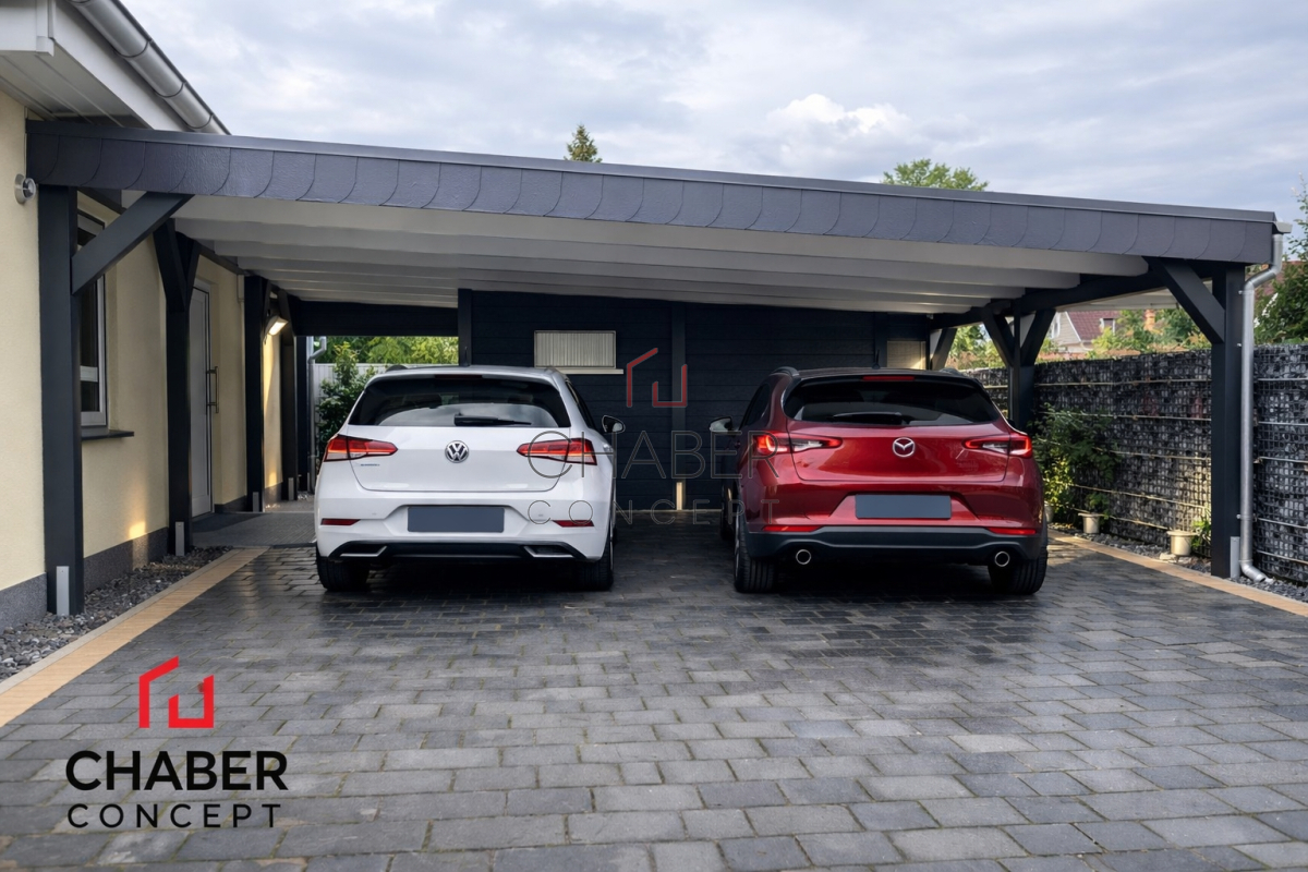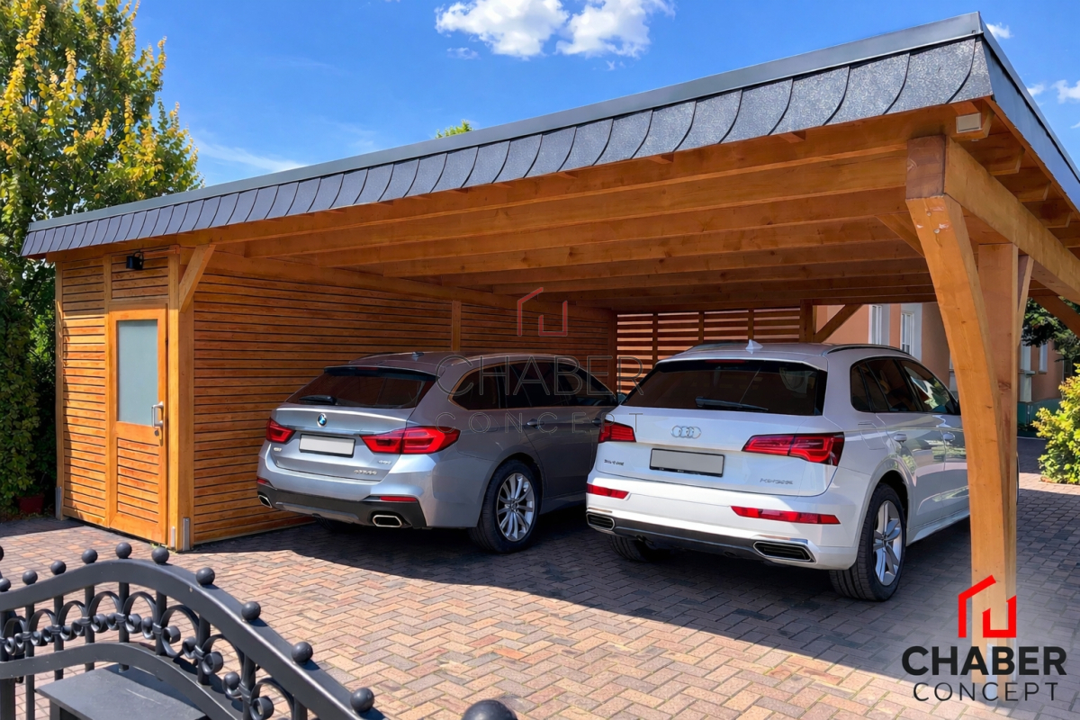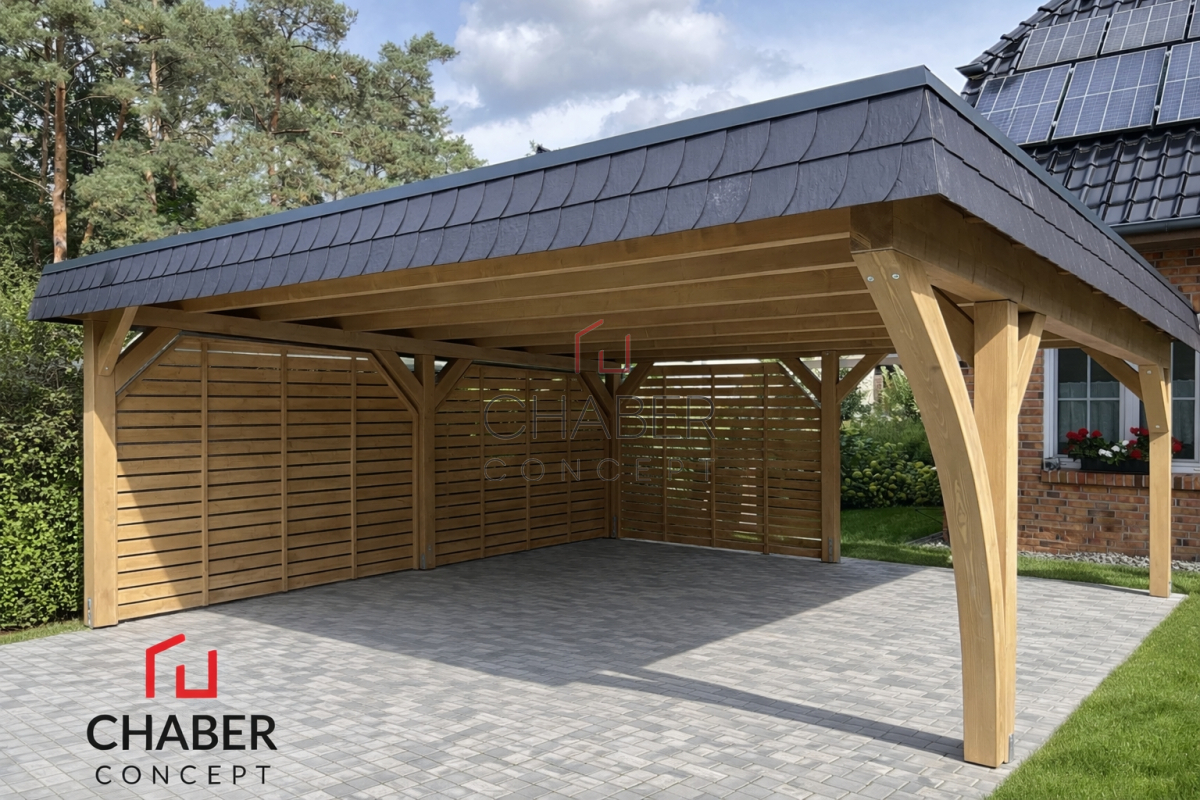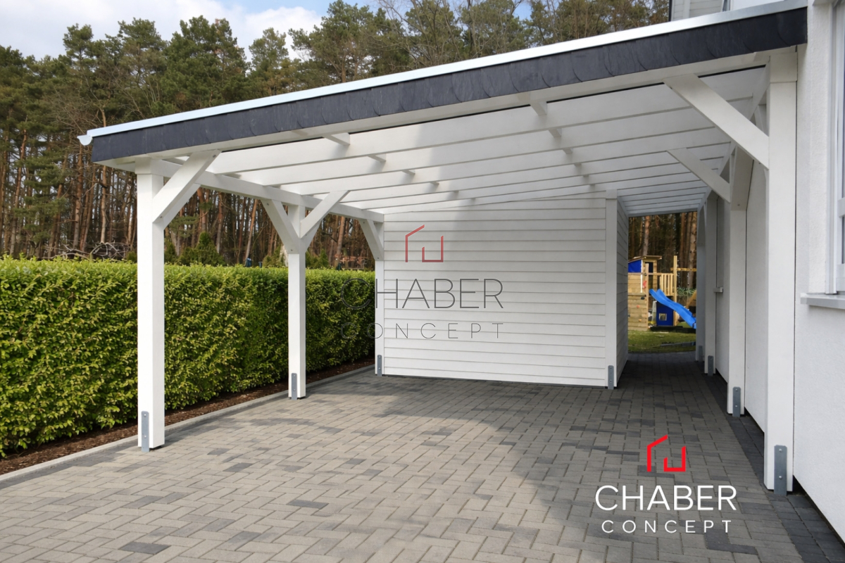 Tischlerei CHABER bietet eine große Auswahl an günstigen Carports: ob Einzelcarport oder Doppelcarport, ob mit Flachdach, Satteldach oder Trapezblechdach, mit Leimbogen oder Lamelen, mit Abstellraum für Gartengeräte und Fahrräder oder als Hobbyraum – bei uns können Sie den für Ihren Bedarf passenden Carport kaufen.